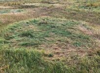 The fertility and forage yield benefits from bale grazing are apparent for several years after bale grazing occurs on a site. Photo courtesy of Deanne Chuiko.