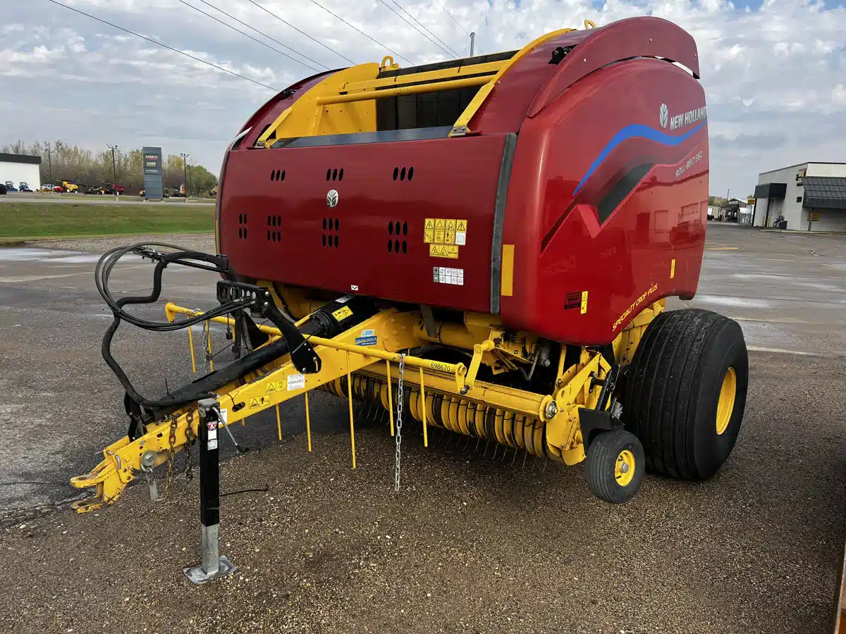 According to the NH announcement, the yellow transition begins with commercial hay tools for late model year 2024, then includes the Pro-Belt round balers for model year 2025.