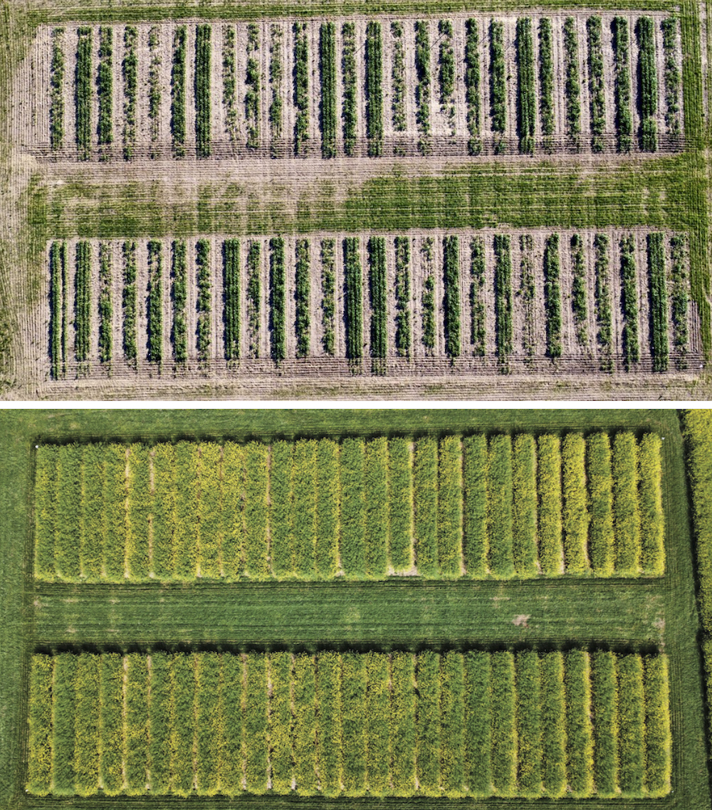 “You’re tilling one-third of the field so you’re losing less carbon and keeping the soil microbiome healthier,” he says. “You might still lose a third of it or somewhat less, but you’re not losing all of it.”