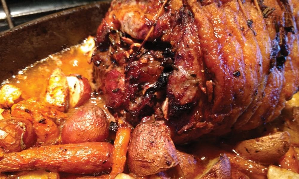 A traditional porchetta means the whole porker, roasted on a spit. This smaller-scale shoulder roast delivers the same lush result in the oven. Serves 6-8.