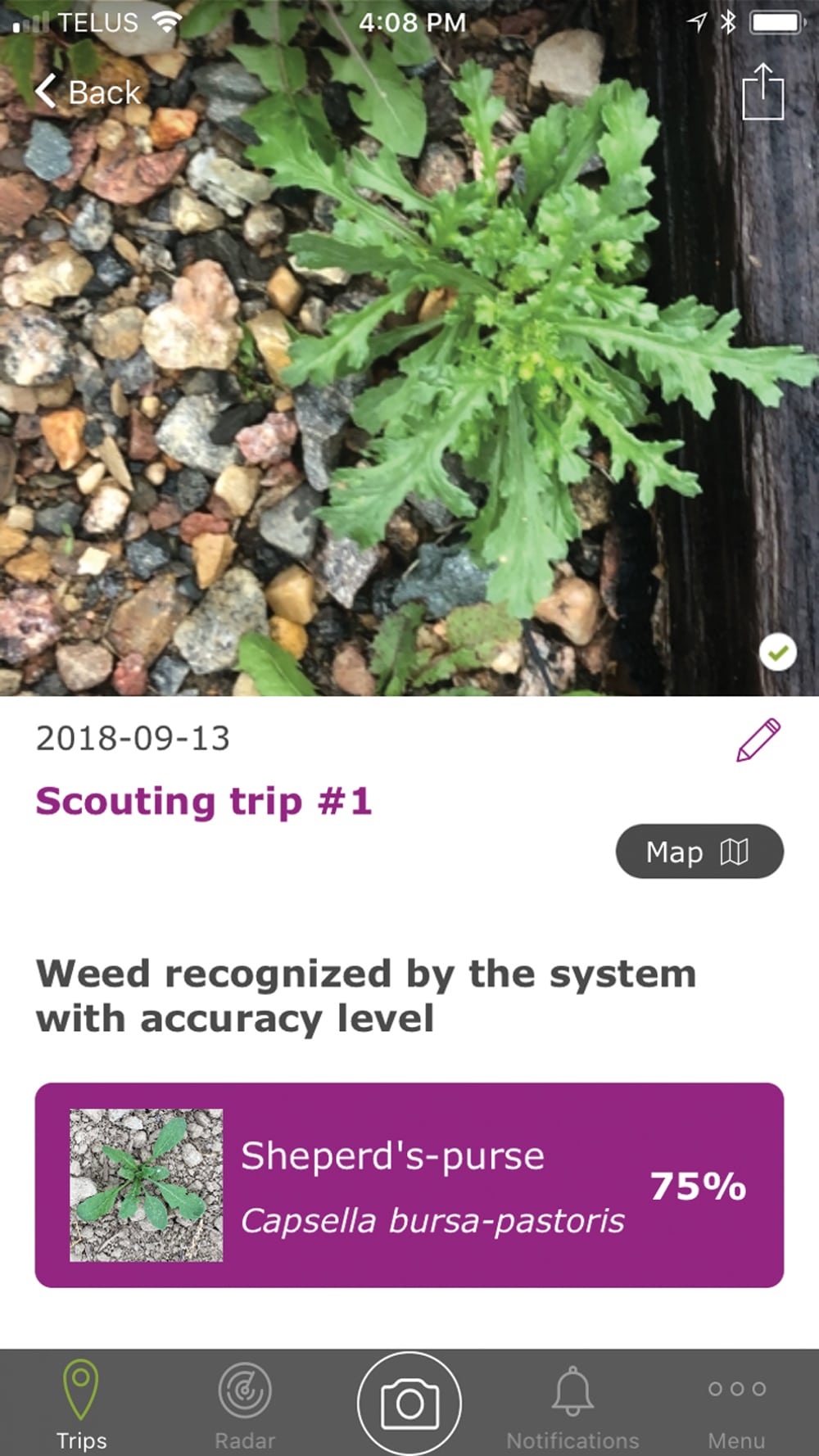 The app will also display the accuracy level of its weed identification. But as more people use the app and upload photos, the app learns and improves. Bills said eventually it will start making smart product suggestions for farmers based on what it’s finding in fields.
