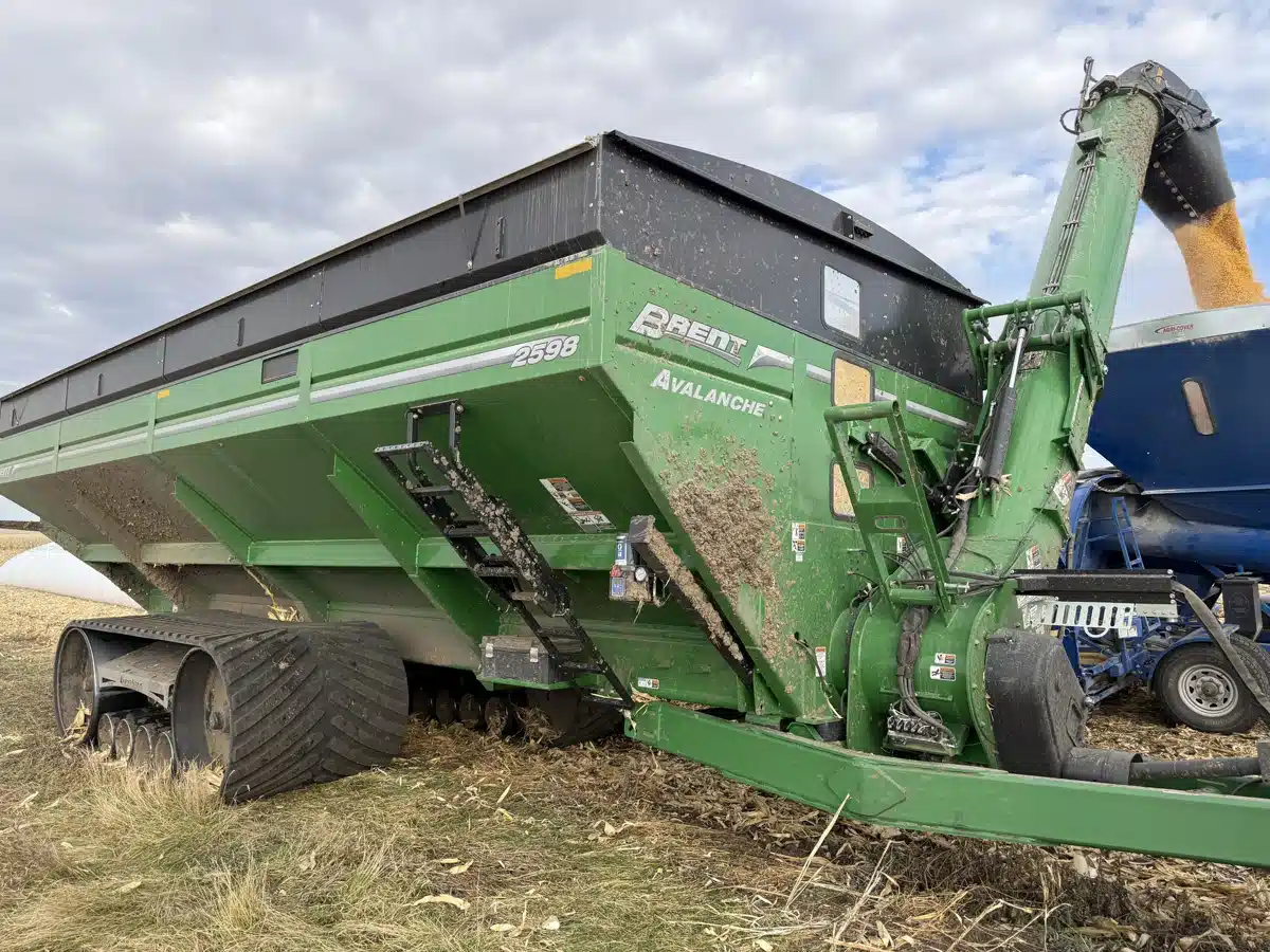 “The intention was to use it in the field as a second grain buggy, because we had three 8820s and we would dump on the go,” Mike says. “But it was just cumbersome for that job. It’s cumbersome to see your blind spots, basically. It can be done once you get the hang of it and (know) how far over you have to be. It’s not ideal like a tractor and grain buggy is.