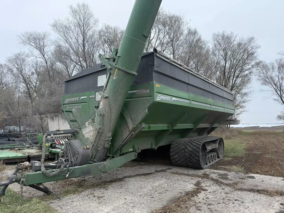 “We did a lot of custom work with 8820s,” Mike says. “We eventually had four and we were looking for another. We found this one was burnt, so we bought it for parts. Then we got the brainwave to strip it for parts for the other 8820s and convert it to what we call the Combuggy. The hopper is a Brent grain buggy.