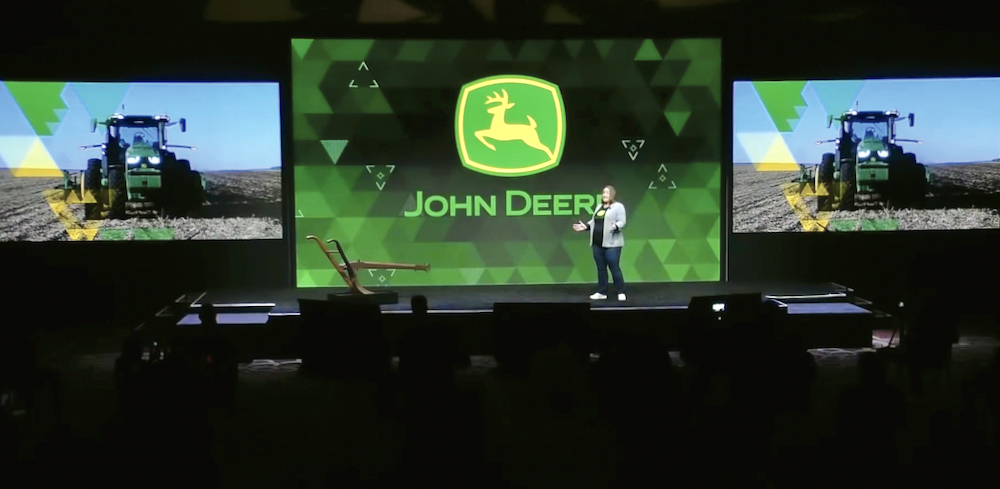 Deere even modified its traditional tagline, “Nothing runs like a Deere,” adding the word “autonomously” at the end as it appeared on stage behind presenters during the press conference.