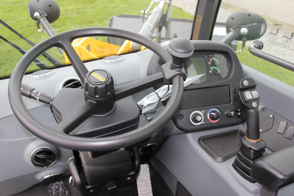 But just like their NH skid steer cousins, the C Series wheel loaders also get a roomy cab to make life comfortable for operators. That includes an adjustable control arm to keep the joystick in just the right spot.