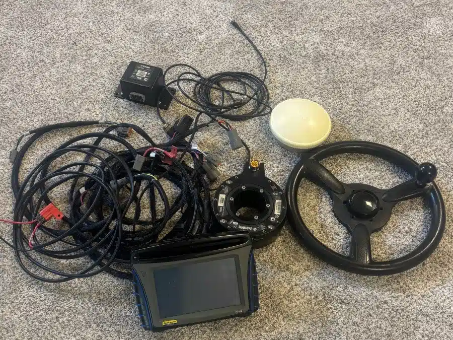 Aside from the monitor and receiver on the tractor, the system relies on a receiver on the scraper as well.
